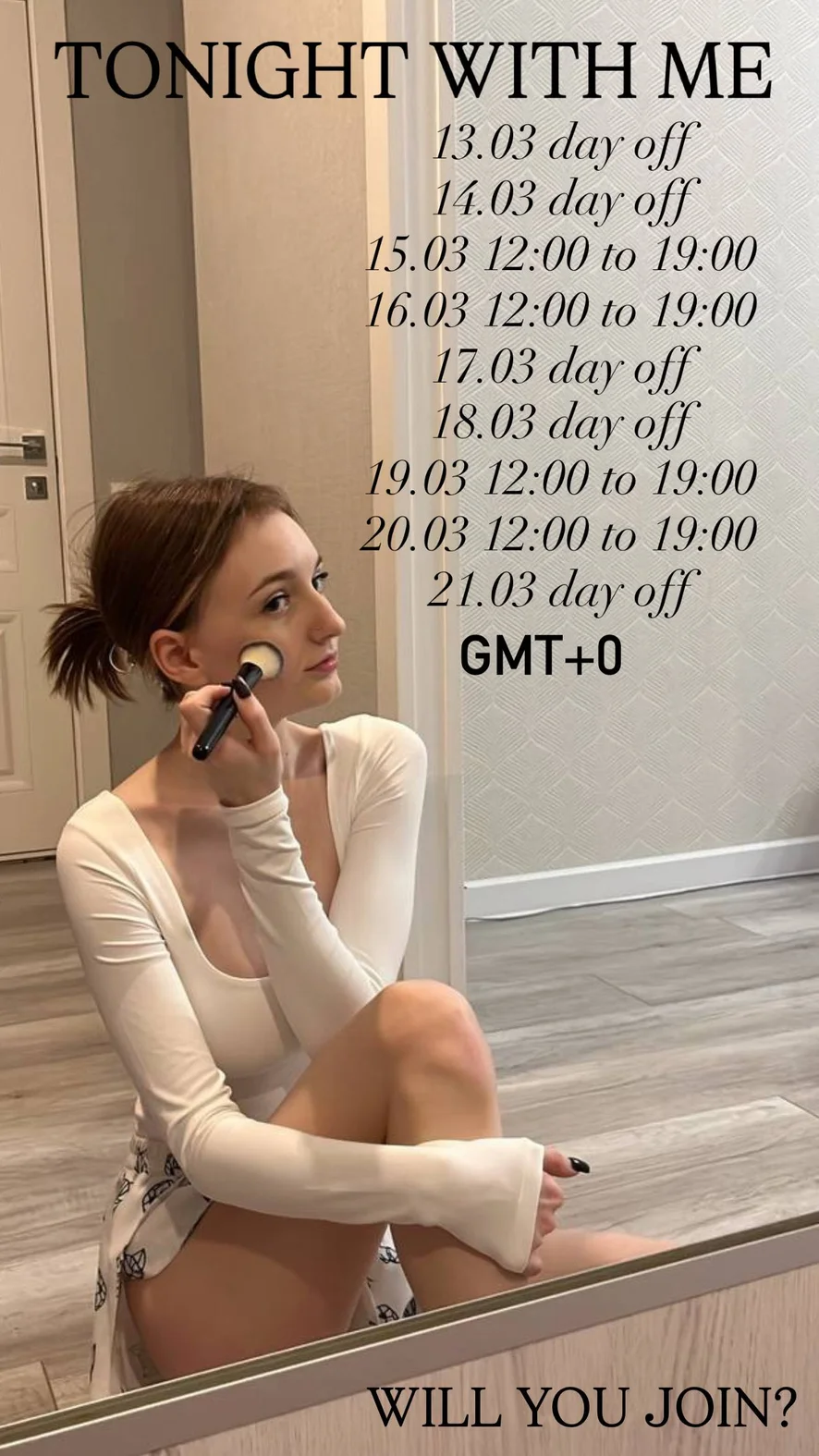 Mocskos beszéd, Jóga, Magassarkú, Cigizős, Farok értékelés, Ahegao, Villantás, Kiverési utasítások, Lovaglás, Szerepjáték, Twerk, Lábfétis, Cici baszós, Orgazmus, Felcsúszott szoknya, Kutyapóz, Félmeztelen, Megalázás, Fenekelés, Erotikus tánc, Tevepata
